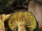 Lamellen entfernt, dicklich, bis 10 mm breit und mit bis 5 mm hohen Queradern verbunden, mitunter auch gabelig, am Stiel wenig herablaufend, jung schön goldgelb, später auch gelblichgrün, alt rostgelb, leicht vom Hutfleisch lösbar, bei Druck nicht verfärbend.